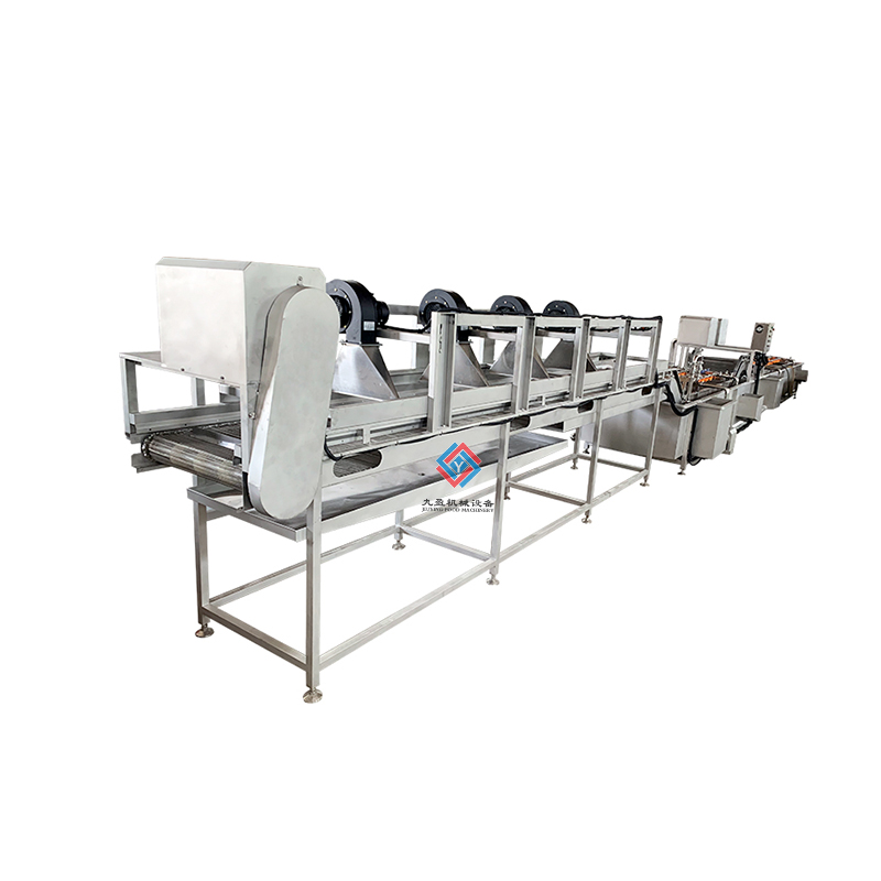 蔬菜清洗加工生產線/流水線是將蔬菜原料經過分級、清洗、切割、包裝等一系列處理之后蔬菜可以直接進行烹飪的新鮮蔬菜產品,它和速凍的蔬菜相比,雖然保存的食品較短,但是能夠保持蔬菜本身的新鮮和營養(yǎng)價值,無需冷凍和解凍,具有食用方便、生產成本低的優(yōu)點,隨著生活節(jié)奏的加快,鮮切的蔬菜具有方便、營養(yǎng)等特點,深受人們的喜愛。